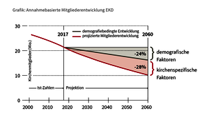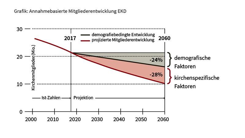 Die Zahlen beruhen auf einer koordinierten Mitglieder- und Kirchensteuervorausberechnung bis zum Jahr 2060 für die evangelische und katholische Kirche in Deutschland, erstellt vom Forschungszentrum Generationenverträge (FZG) der Albert-Ludwig-Universität Freiburg.