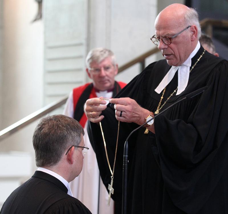In dem Festgottesdienst überreichte der Leitende Bischof der Vereinigten Evangelisch-Lutherischen Kirche Deutschlands (VELKD), Gerhard Ulrich, Meyns das Amtskreuz. Der neue Bischof sei "einer, der mit beiden Beinen fest auf dem Boden der Realität stehe", sagte Ulrich. Meyns verstehe es, Menschen mitzunehmen und sie zu überzeugen.