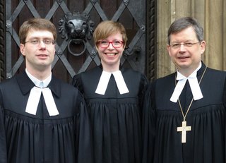 Braunschweig. Eine neue Pfarrerin und einen neuen Pfarrer hat Landesbischof Dr. Christoph Meyns am Sonntag, 21. Februar, im Braunschweiger Dom ordiniert. Er übertrug ihnen ihr Amt in einem besonderen Gottesdienst. Nach dem Vikariat und ihrem Zweiten Theologischen Examen übernehmen sie ihre Stellen zunächst für drei Jahre als Pfarrerin und Pfarrer auf Probe.