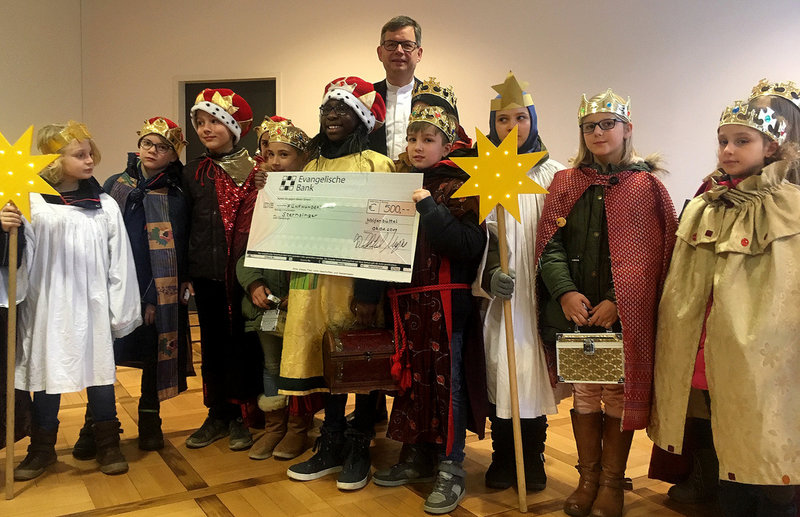 Wolfenbüttel. Eine Spende über 500 Euro für behinderte Kinder in Peru hat Landesbischof Dr. Christoph Meyns am 7. Januar den Sternsingern in Wolfenbüttel übergeben. Sie waren im Landeskirchenamt zu Gast und brachten den Mitarbeiterinnen und Mitarbeitern den Segen für das Jahr 2019. Mit Liedern und Texten machten sie auf die schwierige Lage von behinderten Kindern in Lateinamerika aufmerksam. Getrau eines ihrer Lieder: „Kinder können was bewegen …“ Der Besuch der (katholischen) Sternsinger gehört nicht zuletzt als Zeichen ökumenischer Verbundenheit seit vielen Jahren zur Tradition der bischöflichen Jahresempfänge im (evangelischen) Landeskirchenamt.