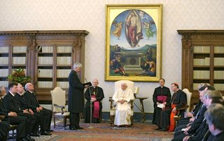 Braunschweig/Rom. Als wichtigen Impuls für das weitere ökumenische Gespräch hat Landesbischof Weber eine Unterredung mit Benedikt XVI. am Montag, 24. Januar, in Rom bezeichnet. Weber nahm als Catholica-Beauftragter der Vereinigten Evangelisch-Lutherischen Kirche Deutschlands (VELKD) an einer halbstündigen Privataudienz der VELKD-Kirchenleitung beim Papst teil. Dabei habe man insbesondere über das Abendmahl für konfessionsverschiedene Ehepaare gesprochen, so Weber.