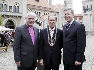 Von dem dauerhaft installierten Balkon führt eine Stahltreppe nach unten. Während der Landesausstellung, die Ministerpräsident Christian Wulff (CDU) am 8. August eröffnet, führt der Rundweg vom Braunschweigischen Landesmuseum über die Burg Dankwarderode direkt in den Dom. Alle drei Orte sind Stationen der Ausstellung aus Anlass der 800. Jahrestages der Krönung Ottos zum Kaiser. Nach Ende der Ausstellung am 8. November wollen Domprediger Hempel und Museumsdirektor Jochen Luckhardt auch die Gegenrichtung freigeben. Im Dom werden dann Eintrittskarten für die Burg erhältlich sein, kündigte Luckhardt an.
