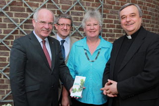 Stellten den neuen Ökumenepreis vor: Landesbischof Prof. Dr. Friedrich Weber, Günter Lehner, Geschäftsführer der Akademie der Bruderhilfe-Versicherung, Regina Claas, Generalsekretärin des Bundes Evangelisch-Freikirchlicher Gemeinden, und der katholische Bischof Dr. Karl-Heinz Wiesemann aus Speyer (von links). Foto: Fredy F. Henning