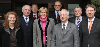 Die neue Kirchenregierung (v.l.n.r.): Pfarrerin Uta Hirschler, Landesbischof Prof. Dr. Friedrich Weber (Vorsitzender), Synodenpräsident Gerhard Eckels, Professorin Dr. Sabine Brombach, Dr. Ekkehard Schulz, Wolf-Dieter Kleinschmidt, Oberlandeskirchenrat Dr. Robert Fischer (stellv. Vorsitzender), Propst Thomas Hofer. Fotos: S. Hübner