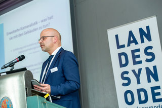 Christian Ferchland, Vorstand der Evangelischen Bank (Kassel), ermutigte die Landessynode, genauer die Auslastung der kirchlichen Gebäude in den Blick zu nehmen. Er stellte eine Bestandsaufnahme zum Immobilienmanagement der Kirchen vor. Kirchengebäude und Gemeindehäuser verzeichnen dabei vergleichsweise geringe Auslastungen, im Gegensatz zu Kindergärten und Pfarrhäusern. Deshalb sei es sinnvoll, über erweiterte Nutzungskonzepte nachzudenken, um Leerstand zu vermeiden. Ferchland regte unter anderem gemeinsame Nutzungen mit anderen zivilgesellschaftlichen Akteuren an.