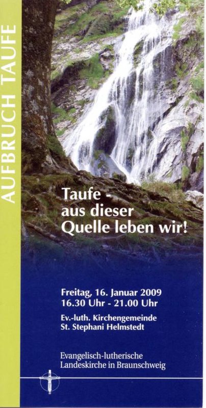 Helmstedt. Ein Forum zum Thema Taufe veranstaltet die missionarische Initiative „Aufbruch" in der Landeskirche Braunschweig am Freitag, 16. Januar 2009, von 16:30 bis 21 Uhr in der Kirchengemeinde St. Stephani in Helmstedt. Dr. Erhard Berneburg (Berlin), Generalsekretär der Arbeitsgemeinschaft Missionarischer Dienste in der EKD, hält ein Impulsreferat zum Motto „Taufe - aus dieser Quelle leben wir!".
