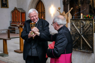 Ein emotionaler Höhepunkt: Als Zeichen der Einheit im Glauben schenkt Franco Buzzi Christian Krause einen Abendmahlskelch.